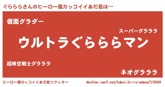 | 男性向けラノベタイトル風あだ名 | 『やはりぐらららの青春ラブコメはまちがっている 』 |