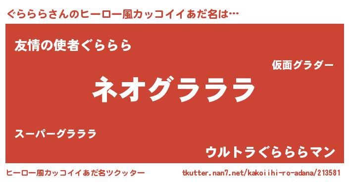 | ヘコむあだ名 | 『ぐららら(小並感)』『なまこ酢』 |