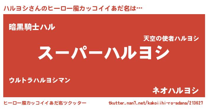 | 男性向けラノベタイトル風あだ名 | 『ハルヨシアートオンライン』 |