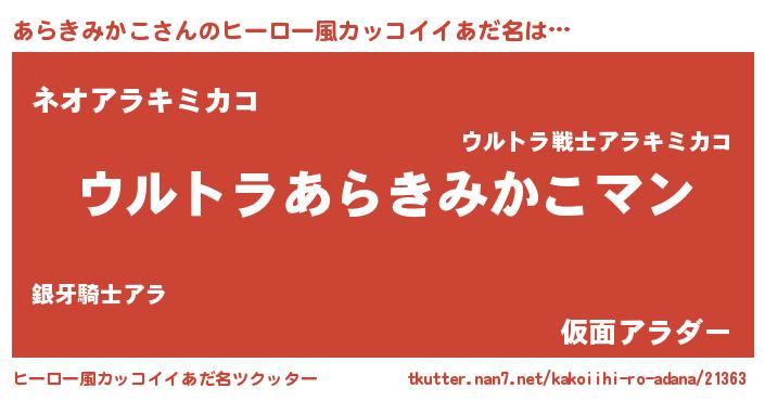| 女子向けラノベタイトル風あだ名 | 『あらきみかこの雑貨屋さん』 |