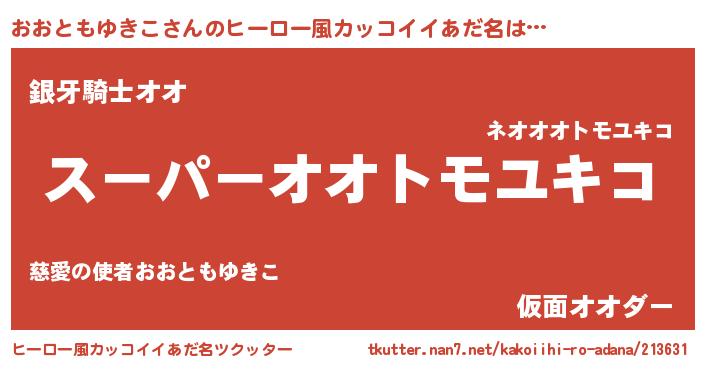 | 男性向けラノベタイトル風あだ名 | 『オオトモユキコアートオンライン』 |