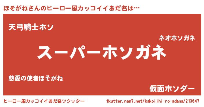 | 胡散臭い通販商品みたいなあだ名 | 『億万長者になれる霊験あらたかなお札…その名も「ほそがね」』 |