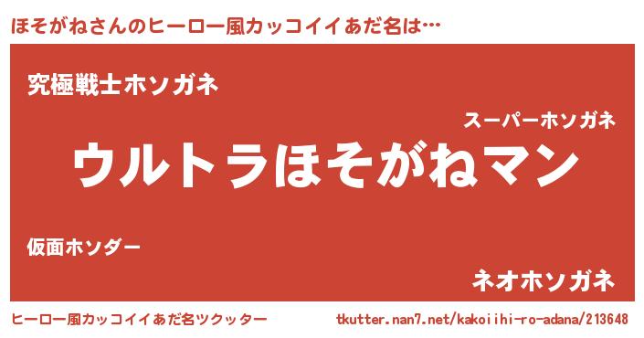 | ファンタジー風あだ名 | 『エターナルホソガネー』『ゼホソトゥ』 |