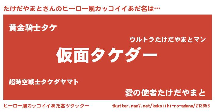 | 男性向けラノベタイトル風あだ名 | 『この素晴らしい世界にたけだやまとを!』 |