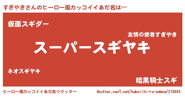 | 男性向けラノベタイトル風あだ名 | 『スギヤキアートオンライン』 |