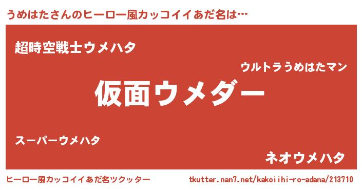 | 男性向けラノベタイトル風あだ名 | 『この素晴らしい世界にうめはたを!』 |