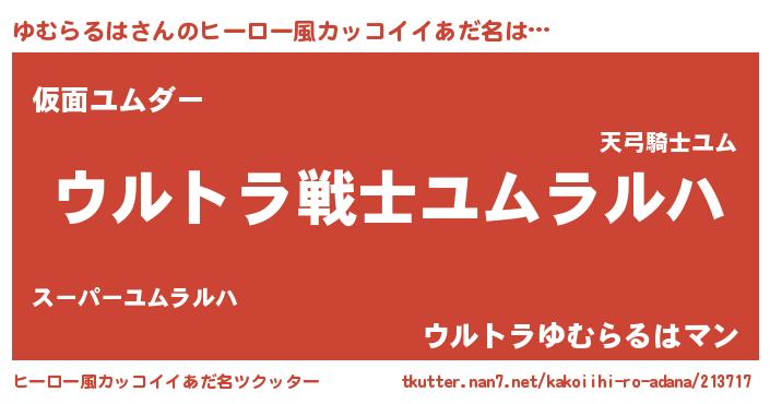 | 男性向けラノベタイトル風あだ名 | 『はたらくゆむらるはさま!』 |