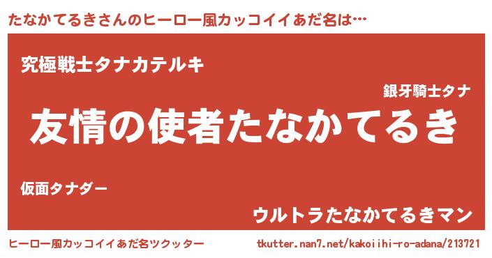 | 男性向けラノベタイトル風あだ名 | 『おまえをオタクにしてやるから、俺をたなかてるきにしてくれ! 』 |