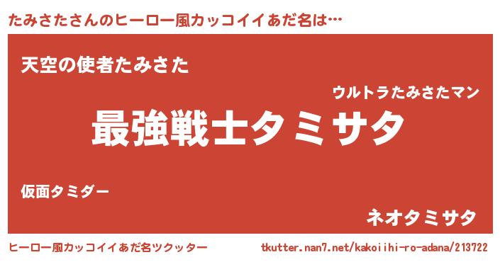 | 男性向けラノベタイトル風あだ名 | 『Re:たみさたから始める異世界生活』 |