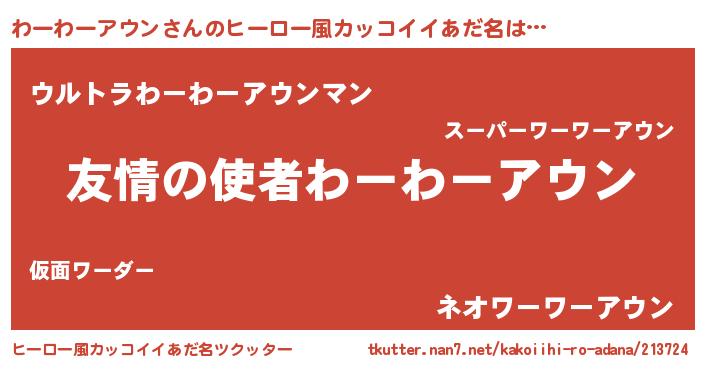 | 自動車の名前っぽいあだ名 | 『フィッワ』『ワクア』『デミワ』 |