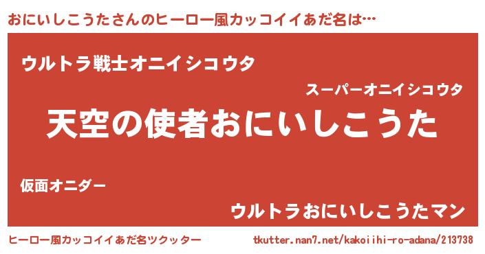 | 男性向けラノベタイトル風あだ名 | 『ノーゲーム・ノーオニイシコウタ』 |