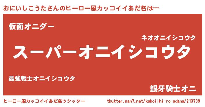 | 男性向けラノベタイトル風あだ名 | 『うちのおにいしこうたが世界を掌握している!』 |