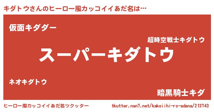 | 男性向けラノベタイトル風あだ名 | 『キダトウスレイヤー』『キダトウの憂鬱』 |