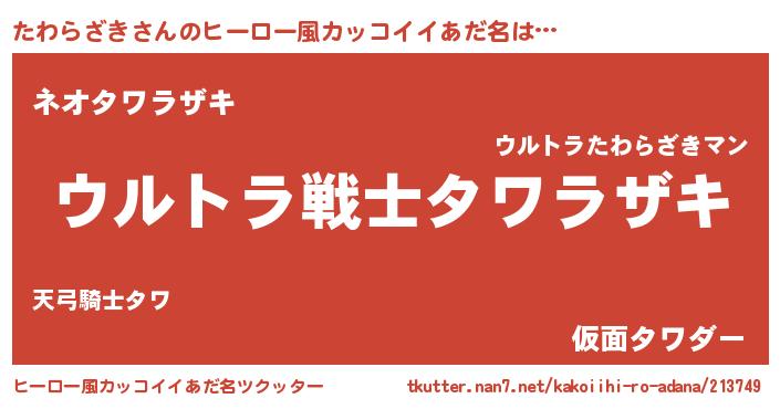 | 男性向けラノベタイトル風あだ名 | 『緋弾のタワラザキ』 |