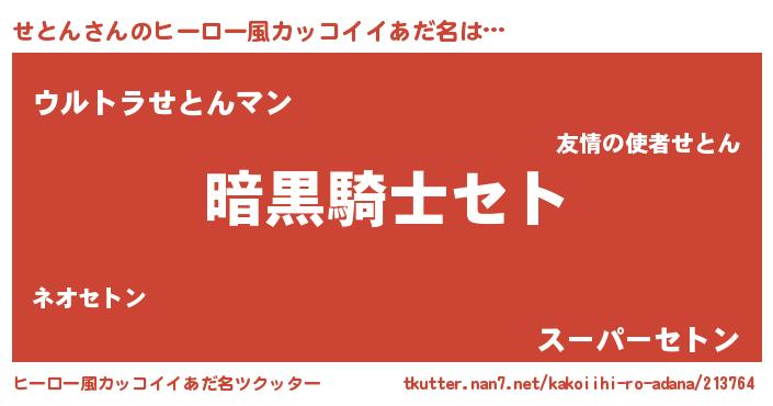 | 胡散臭い通販商品みたいなあだ名 | 『信頼と実績のサプリメント…その名も「せとん」』 |