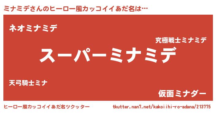 | ファンタジー風あだ名 | 『ミナフェル』『ミナディッシュ』 |