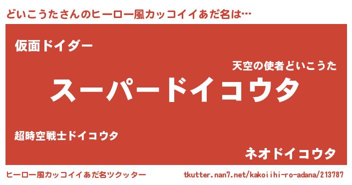 | 男性向けラノベタイトル風あだ名 | 『ドイコウタアートオンライン』 |