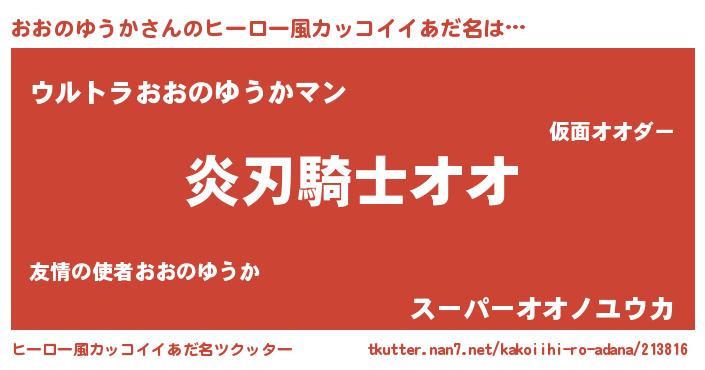 | 欧米人風あだ名 | 『ウサインおおのゆうか』 |