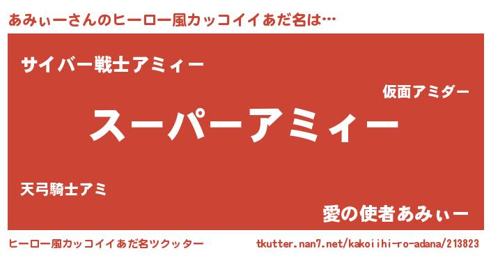 | 男性向けラノベタイトル風あだ名 | 『あみぃーの憂鬱』 |