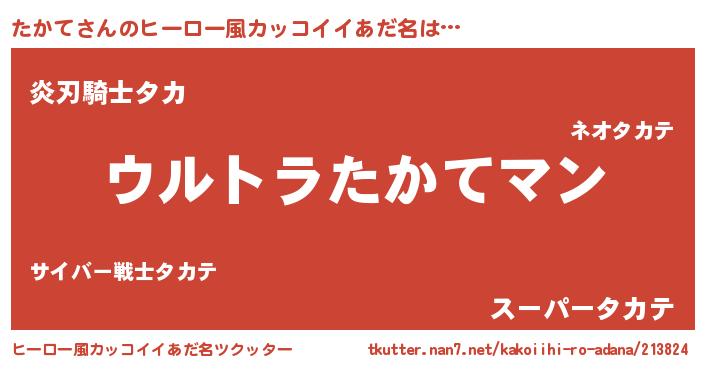 | 男性向けラノベタイトル風あだ名 | 『たかてに滅ぼされるだけの簡単なお仕事です』 |