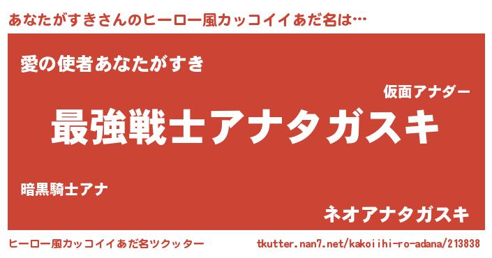 | 男性向けラノベタイトル風あだ名 | 『Re:あなたがすきから始める異世界生活』 |