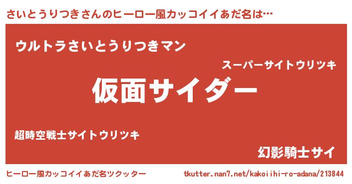 | 男性向けラノベタイトル風あだ名 | 『さいとうりつきに滅ぼされるだけの簡単なお仕事です』 |