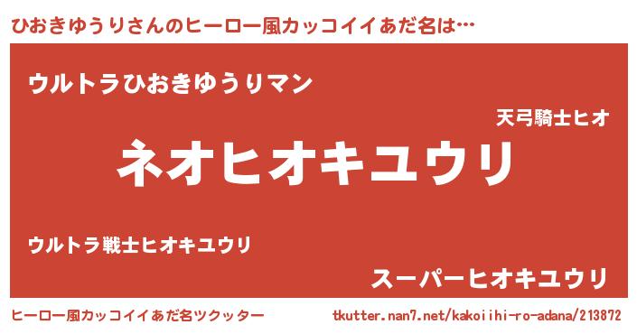 | 男性向けラノベタイトル風あだ名 | 『ひおきゆうり~年齢イコール彼女いない歴の魔法使い~』 |
