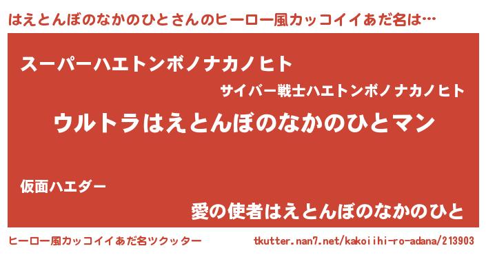 | 伝説のあだ名 | 『最強の忍者はえとんぼのなかのひと』 |