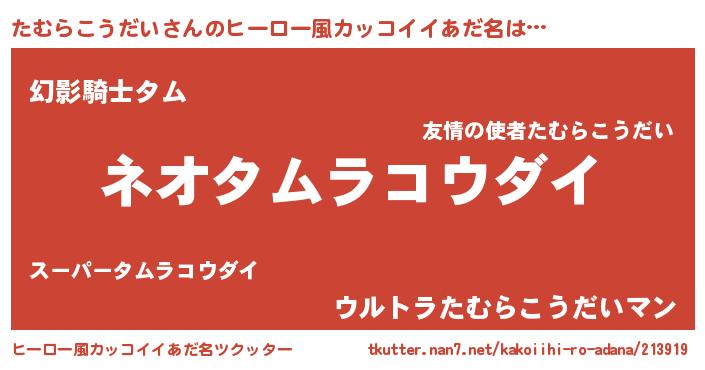 | 意味不明あだ名 | 『永久保存たむらこうだい』 |