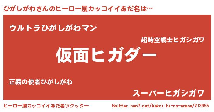 | 意味不明あだ名 | 『住所不定無職ひがしがわ(4歳)』 |