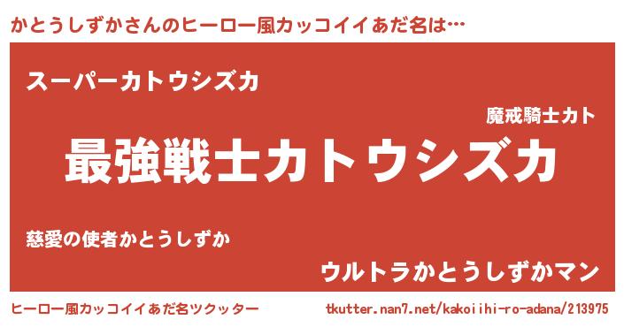 | 男性向けラノベタイトル風あだ名 | 『Re:かとうしずかから始める異世界生活』 |
