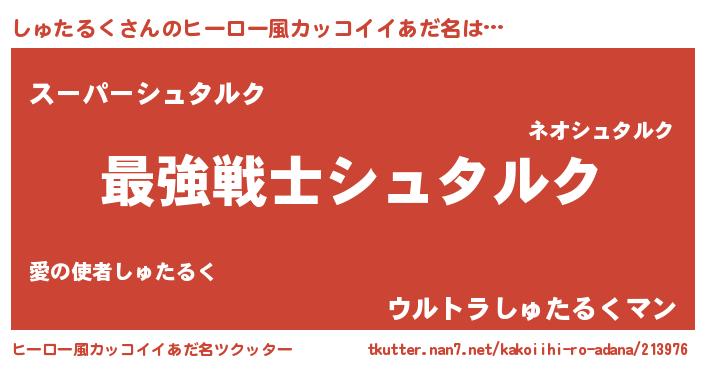 | 意味不明あだ名 | 『自称しゅたるく』『ペロリンしゅたるく』 |