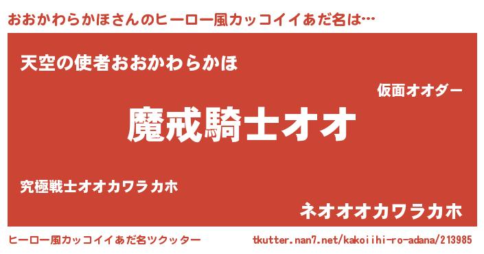 | ポケモン風あだ名 | 『ヒオオカワラカホ』『オックウザ』 |