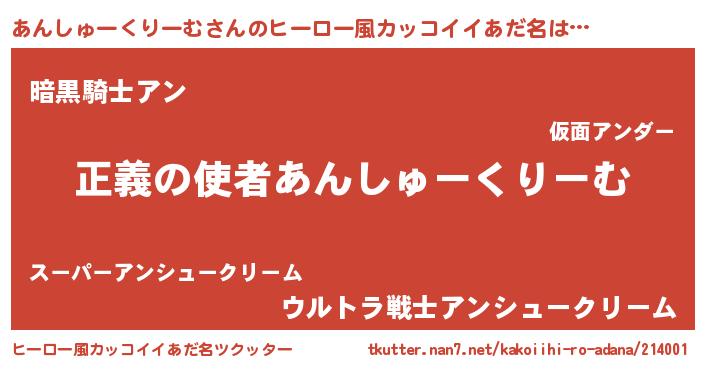 | 男性向けラノベタイトル風あだ名 | 『緋弾のアンシュークリーム』 |