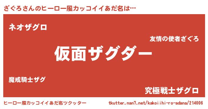 | 男性向けラノベタイトル風あだ名 | 『この素晴らしい世界にざぐろを!』 |
