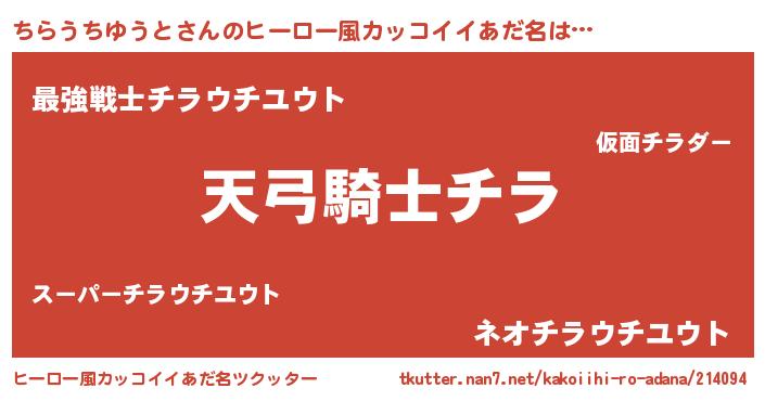 | ヘコむあだ名 | 『ちらっ子』『ちらうちゆうと(笑)』 |