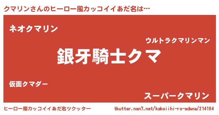 | 男性向けラノベタイトル風あだ名 | 『クマリンに滅ぼされるだけの簡単なお仕事です』 |