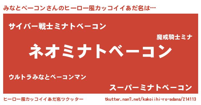 | 男性向けラノベタイトル風あだ名 | 『ミナトベーコンスレイヤー』 |