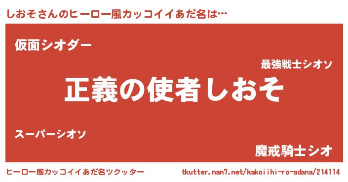 | 女子向けラノベタイトル風あだ名 | 『しおそ夫妻のなれそめ』『闇のしおそ』 |