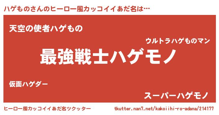 | 男性向けラノベタイトル風あだ名 | 『Re:ハゲものから始める異世界生活』 |