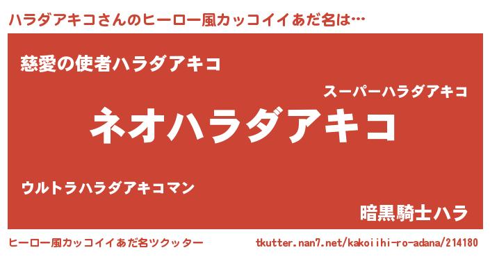 | 意味不明あだ名 | 『永久保存ハラダアキコ』 |