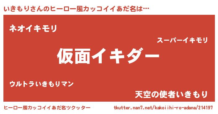| ポケモン風あだ名 | 『イーキイ』『ゼニイキ』『イキゴンZ』 |