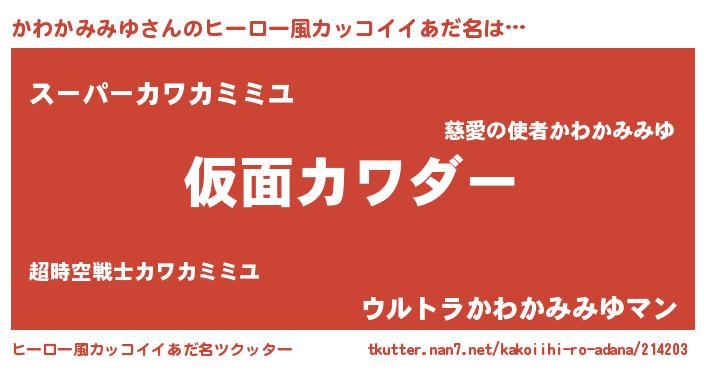 | 意味不明あだ名 | 『住所不定無職かわかみみゆ(2歳)』 |