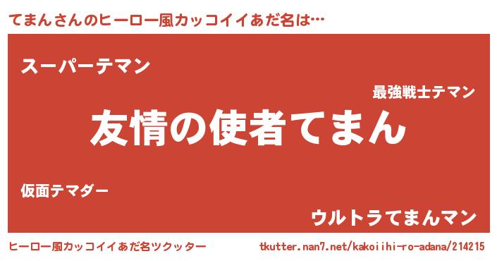 | 男性向けラノベタイトル風あだ名 | 『おまえをオタクにしてやるから、俺をてまんにしてくれ! 』 |