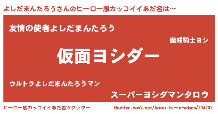 | 欧米人風あだ名 | 『ダレノガレよしだまんたろう』 |