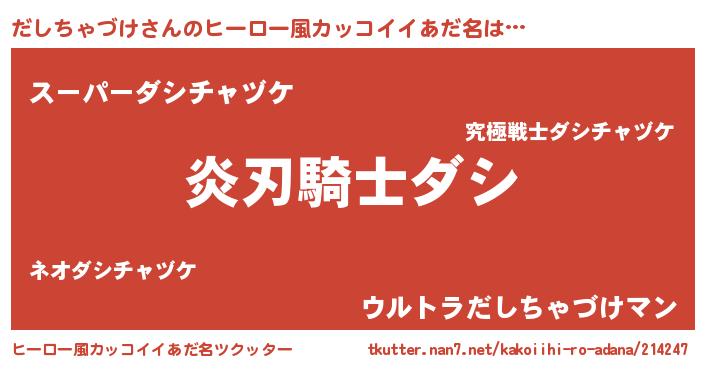 | 意味不明あだ名 | 『とにかく怪しいだしちゃづけ』 |