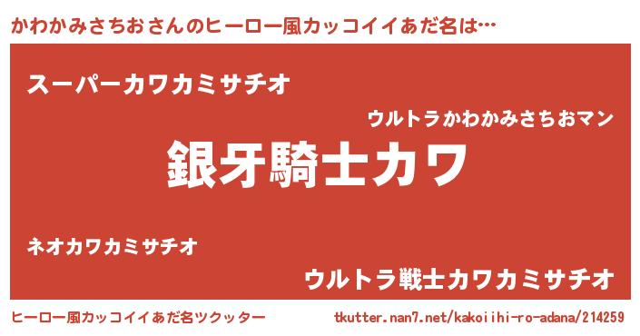 | 意味不明あだ名 | 『とにかく怪しいかわかみさちお』 |