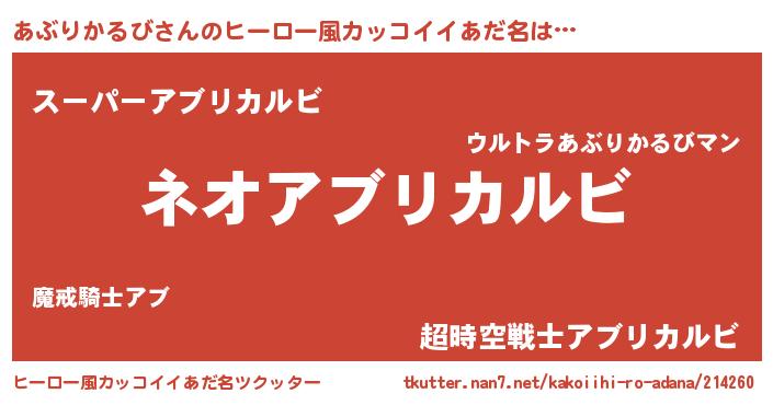 | ヘコむあだ名 | 『あぶりかるび(爆)』『あぶにゅー』 |