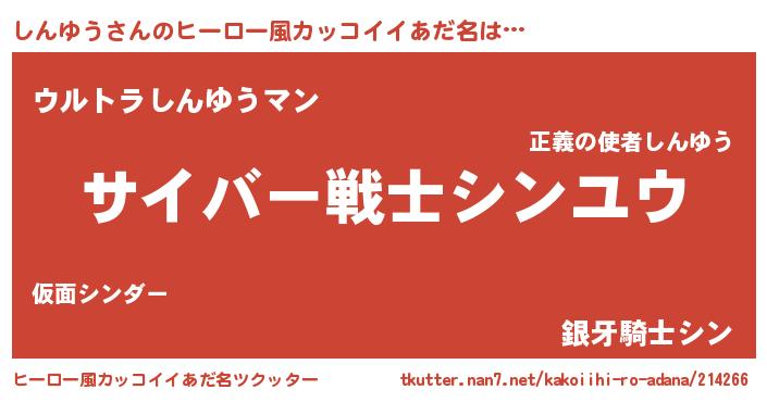 | 男性向けラノベタイトル風あだ名 | 『Re:しんゆうから始める異世界生活』 |