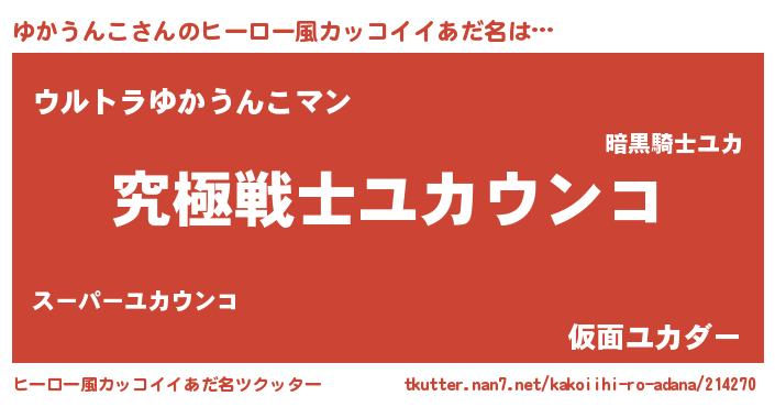| 女子向けラノベタイトル風あだ名 | 『ゆかうんこストレイドッグス』 |